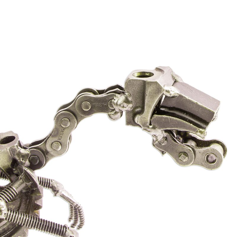 This is the fourth piece I have purchased from Mr Ramirez. (The other three were cats.) They are all fantastic! He captures the essence of a person, occupation or thing with just a few pieces of recycled metal. I don know how he does it. This motorbike is a gift for a person who once rode a full-sized one, but is now too old to continue. I know he will love it and it will give him happy memories.
