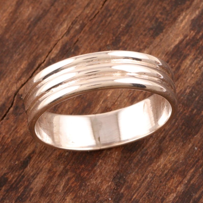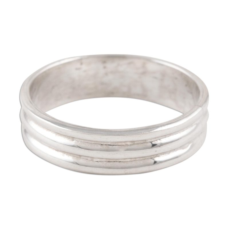 This appealingly straightforward band ring is the creation of Rakesh Rana in India. Artisans craft the versatile ring from high-polish sterling silver with three raised ridges.