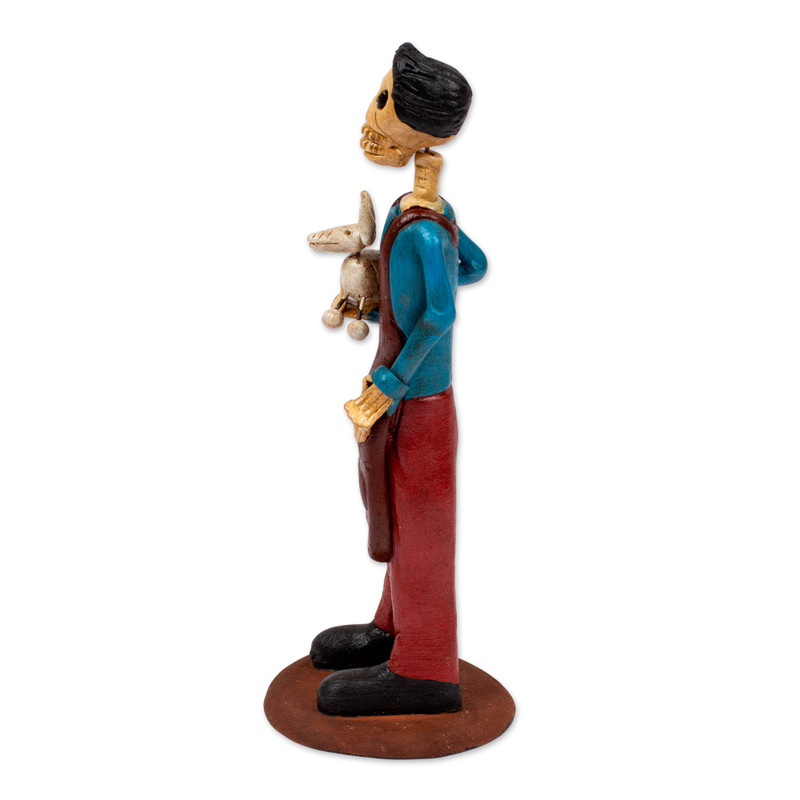 Backed by our Happiness GuaranteeWith a nod to José Guadalupe Posada's "La Calavera Catrina", Mexico's Jorge Escamilla creates this unique sculpture. Wearing an apron and holding a skeletal puppy, the diligent skeletal veterinarian is crafted of clay and steel wire. The original "La Calavera Catrina" was a zinc etching created by the artist José Guadalupe Posada in Mexico around 1910. Posada created the character, a female skeleton with an elegant hat, as a satirical portrait to lampoon Mexican natives who aspired to European style and denied their own heritage. The catrina has since become an emblem of Mexico's Day of the Dead celebration and a popular folk art subject.