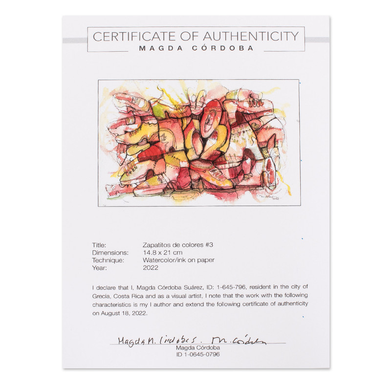 You can find our 'colorful Shoes III' by Magda Cordoba in paintings categories such as Expressionist Paintings, Watercolor Paintings and Ink Paintings. Enjoy exploring these sections for other Novica treasures.