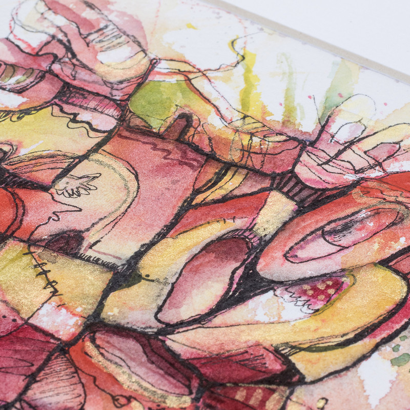 Delivery Estimate"Shoes are a subject that has fascinated me since I was a child because I've always known they have to do with the importance of feeling good," says Costa Rican artist Magda Cordoba who created a series around this theme by working with watercolor and ink on paper. She uses the collage technique where she cuts each shoe, places it on the paper and then gives them a color treatment. The unique Expressionist-style painting comes with a cardboard mat and a foamboard base.