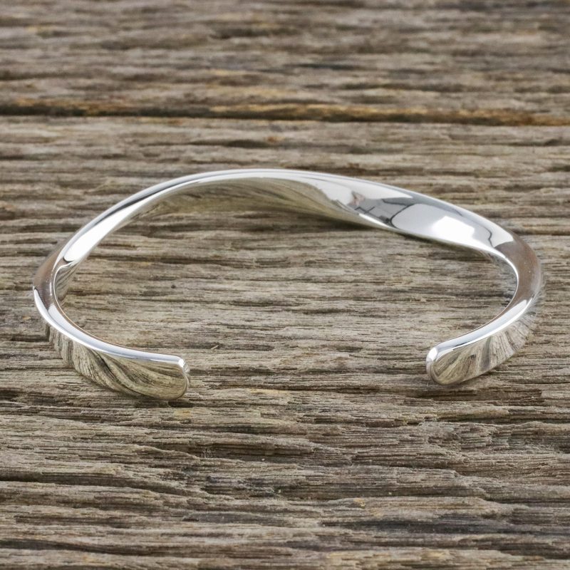 Crafted of sterling silver, an elegant wave circles the wrist in this bracelet from Thailand. Aoy presents the bracelet, given a high-polish finish.