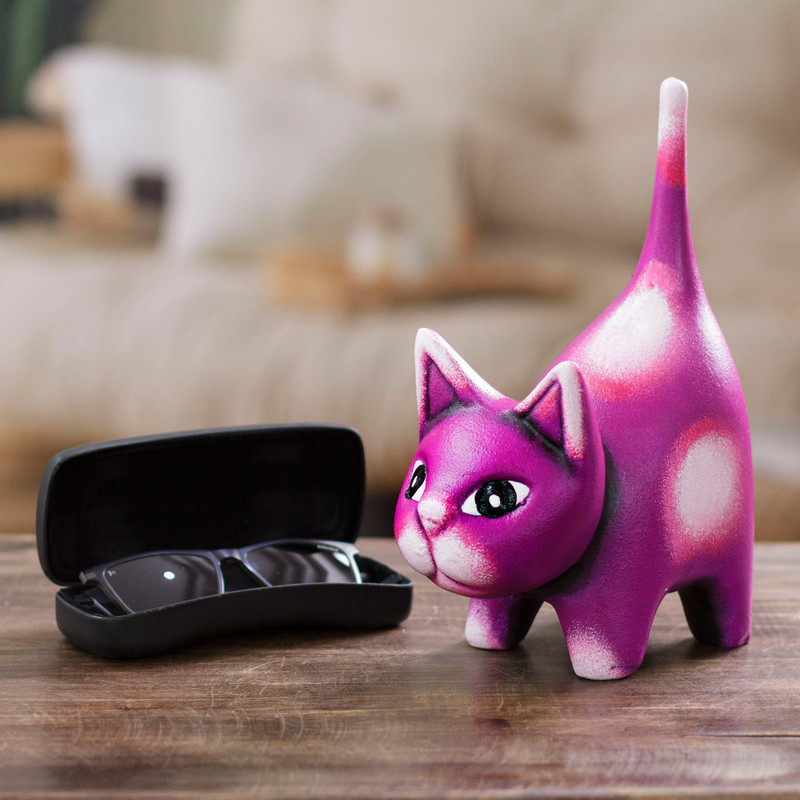You can find our ceramic sculpture 'Feline Audacity in Aubergine' by Nohemi Calixto in sculpture categories such as Animal Themed Sculpture, Hand Painted Sculpture, Whimsical Sculpture and Ceramic Sculpture. Enjoy exploring these sections for other Novica treasures.