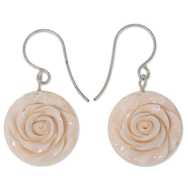 I love rose inspired jewelry and I love carved bone These earrings will not dissapoint! They match the bone rose pendants that Novica offers. I chose the dangle version because I have long hair. I love the color of the bone. The detail is very well crafted. I will enjoy wearing them! Thank you!!