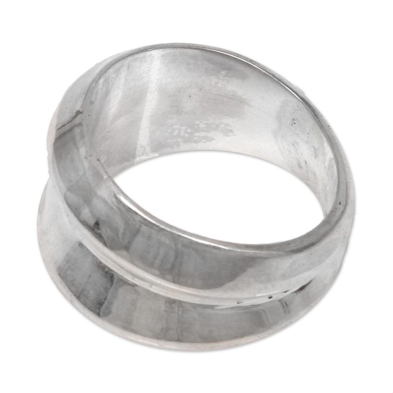 Moonlight in Bali inspires this contemporary ring design. Minimalist in style, the wide sterling silver band is presented by Komang Wijayana.