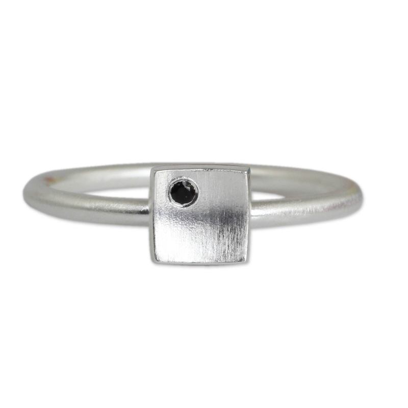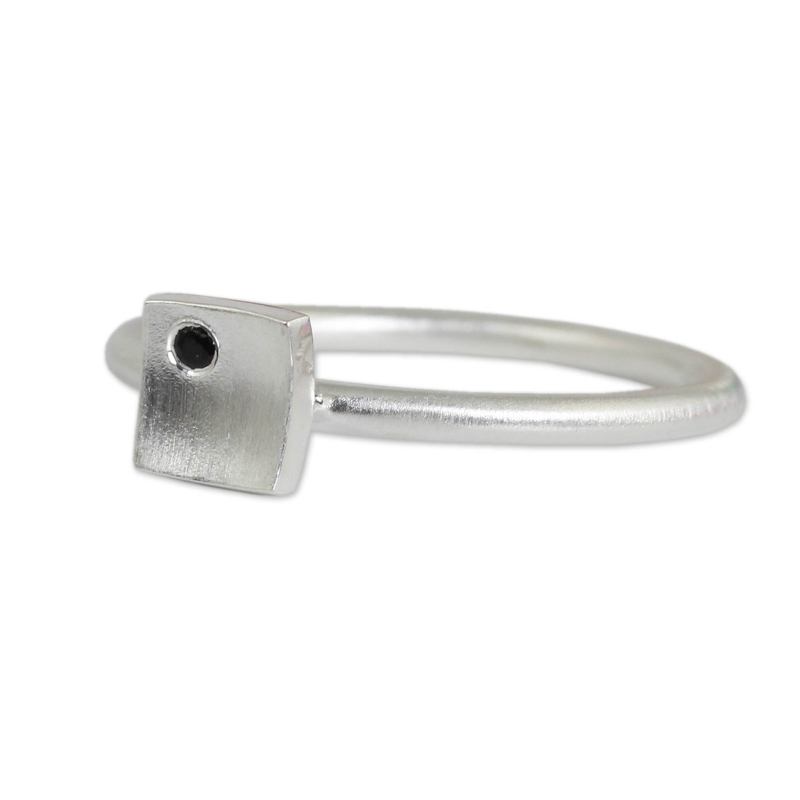 Backed by our 100% Happiness GuaranteeDainty and feminine, a petite silver square centers this ring from Thai artisan Jantana. The ring features the artisan's trademark brushed satin finish, as well as a faceted round black onyx gem.