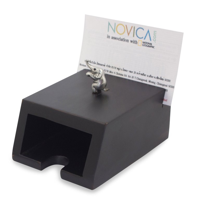 You can find our wood and pewter business card holder 'Playful Elephant' by Jaifah Aksornsri in decor accessories categories such as Animal Themed Office Accessories, Pewter Office Accessories and Wood Office Accessories. Enjoy exploring these sections for other Novica treasures.