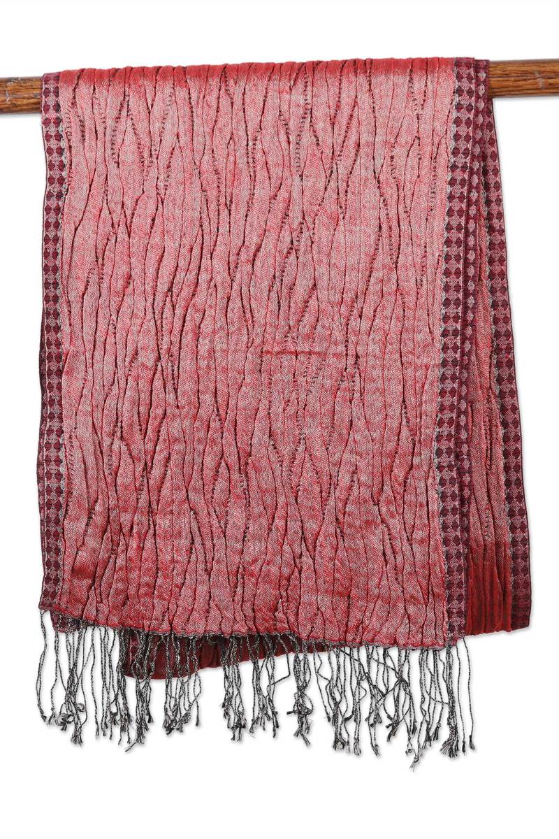You can find our wool blend scarf 'Crimson Ripples' by Sandeep Malhotra in accessories categories such as Geometric Scarves, Wool Scarves and Wrap Scarves. Enjoy exploring these sections for other Novica treasures.