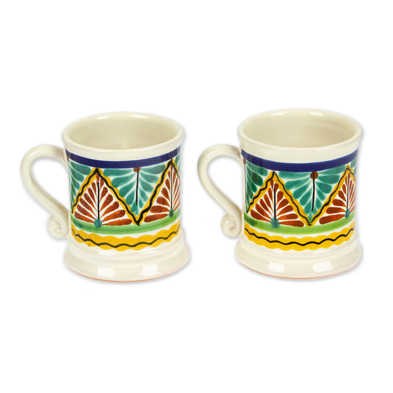 Delivery EstimatePainted entirely by hand, colorful zigzag designs decorate this pair of mugs from Mexico. Gorky Gonzalez invites you to enjoy the beauty of traditional majolica ceramics. At the bottom, each mug is marked with the artisan's initials, as well as the letters "AT" for Alfarería Tradicional (Traditional Pottery).